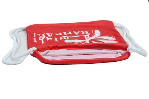 Umre sırasında içerisine terlik v.b. eşya koyulması için üretimini yaptığımız ağzı büzgülü ipli sırt çantası modelimiz.