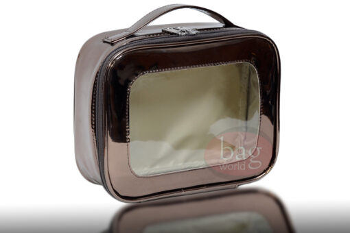 Parlak suni deri kullanılarak ön kısmı şeffaf PVC den kozmetik ve makyaj çantası imalatımız. Kozmetik çantası üzerine firmanıza ait logoyu basabilir firmanızın tanıtımına katkı sağlayabilirsiniz. Ayrıca Ön kısmın şeffaf olması içerisine konulacak ürünlerinde rahatça görülmesini sağlayacaktır.